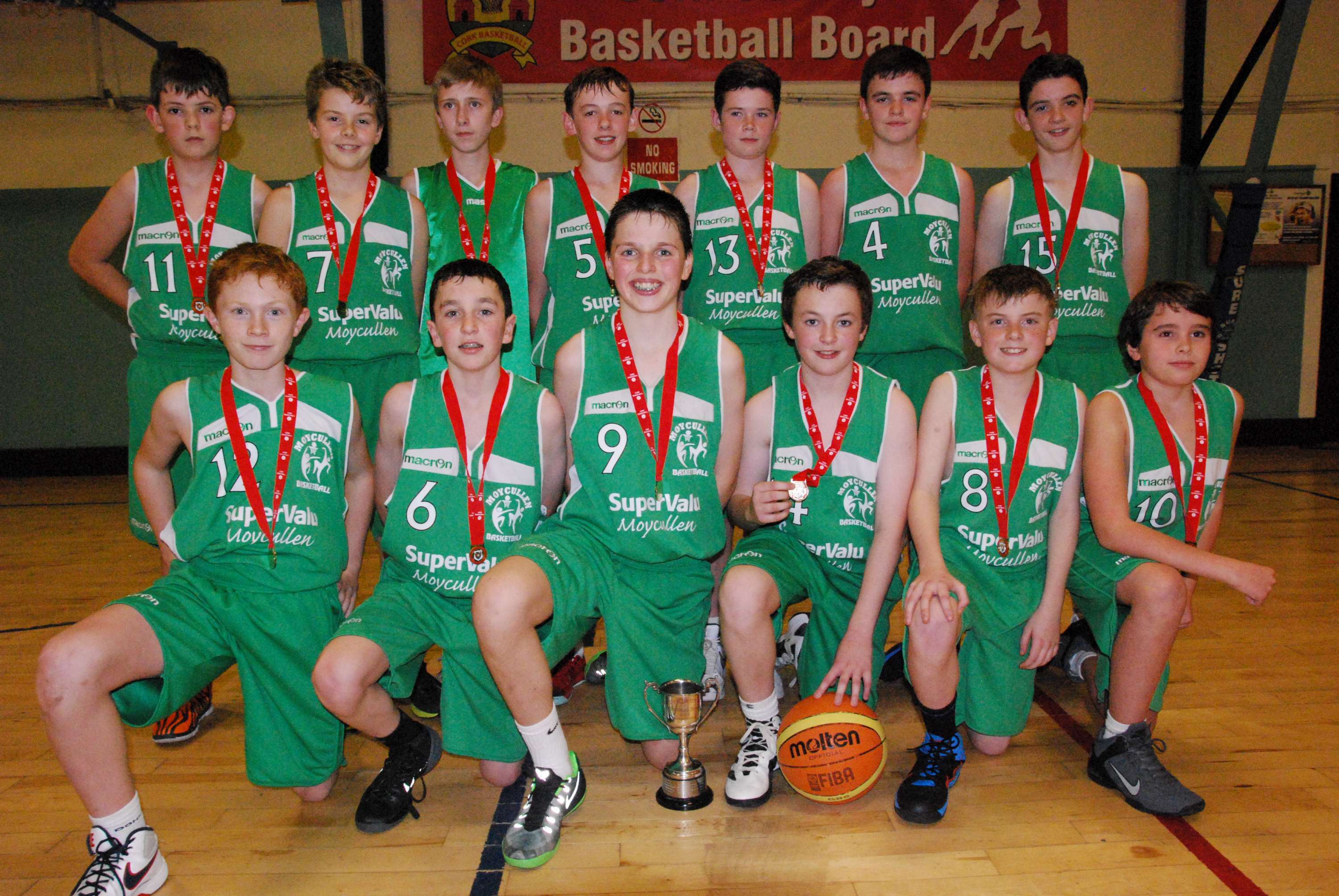 Moycullen U14 boys win Cork County Board title.Our U14 boys team travelled to Cork on Saturday hoping to repeat their success of last year when they beat Fr Mathews in the Cork County board final in overtime. This time, John Cunningham took the reins and after a shaky start in the first game against Blue Demons when the boys lost a 6 point lead going into the last quarter, they went from strength to strength – each performance stronger than the one previous. They took the court against Limerick Lions (who had lost their first game against Demons on a 54-51 scoreline),knowing defeat would have them back in Galway in time for Ireland/Australia on the TV and demolished their opponents 19-2 in the first quarter. That lined them up for a 3:00 quarter final against Portlaoise, a team that had beaten them some weeks earlier at Liffey Celtics tournament and played great basketball throughout, winning 58-38. The highlight of this particular game had to be the three pointer from Conor Walsh that had the whole Moycullen bench on their feet applauding.
