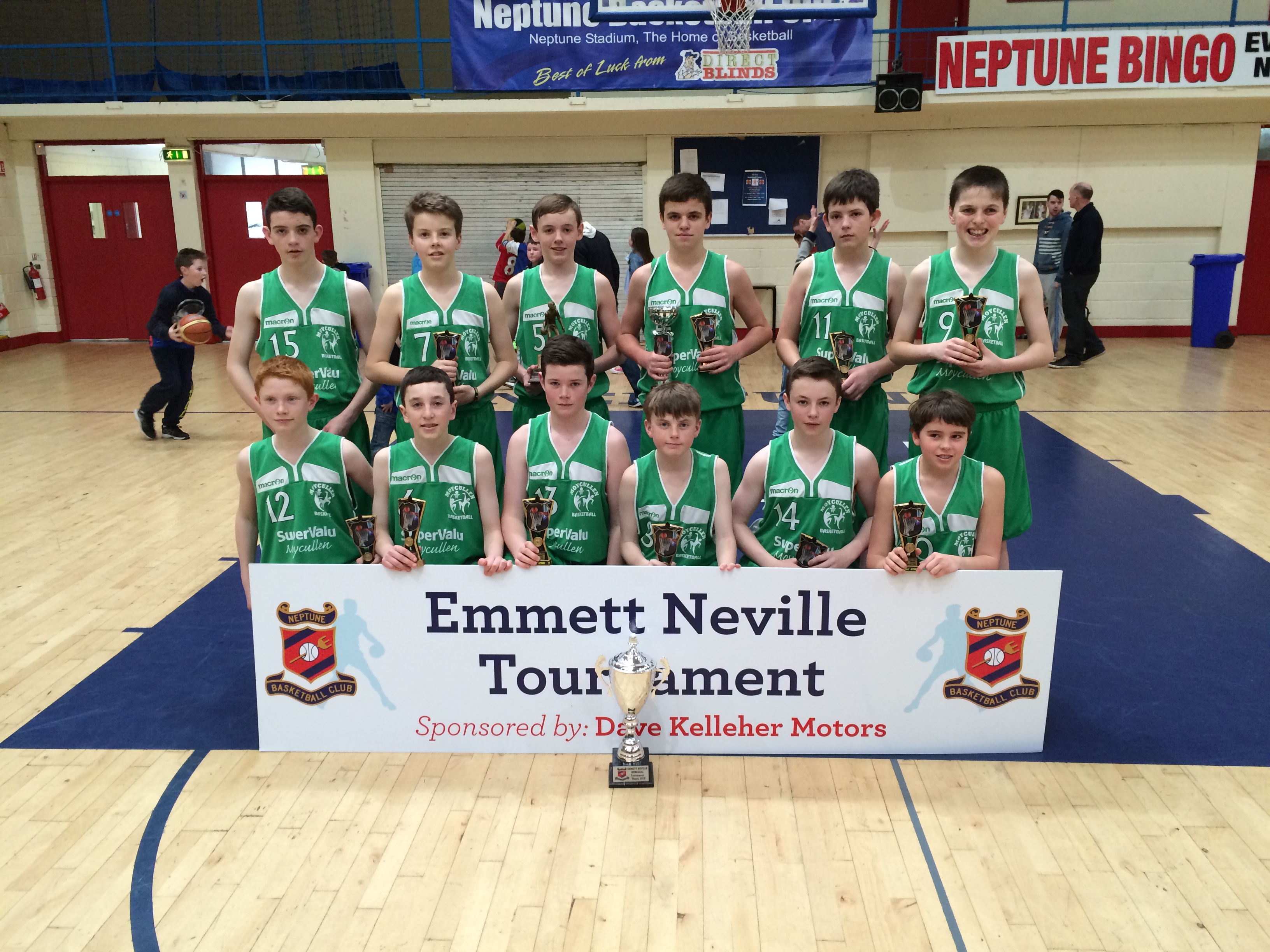 Moycullen U14 Boys continued their great season winning the Emmet Neville tournament overcoming the home team 68-34 in Neptune stadium at the weekend. The boys were placed in a strong group which included Befast Star, Blue Demons, Limerick Celtics & Kerry Green and played consistently throughout the day recording four wins. The last game of the day at 3:40 against Star was to decide the group as both teams had recorded three wins up to that point. The lads’ only previous encounter with star had ended in defeat in a Liffey Celtics tournament at the start of the season. Defence proved key in the game as the lads restricted Star to 28 points, scoring 37 themselves to record a satisfying victory and head to the semis as the group winners.