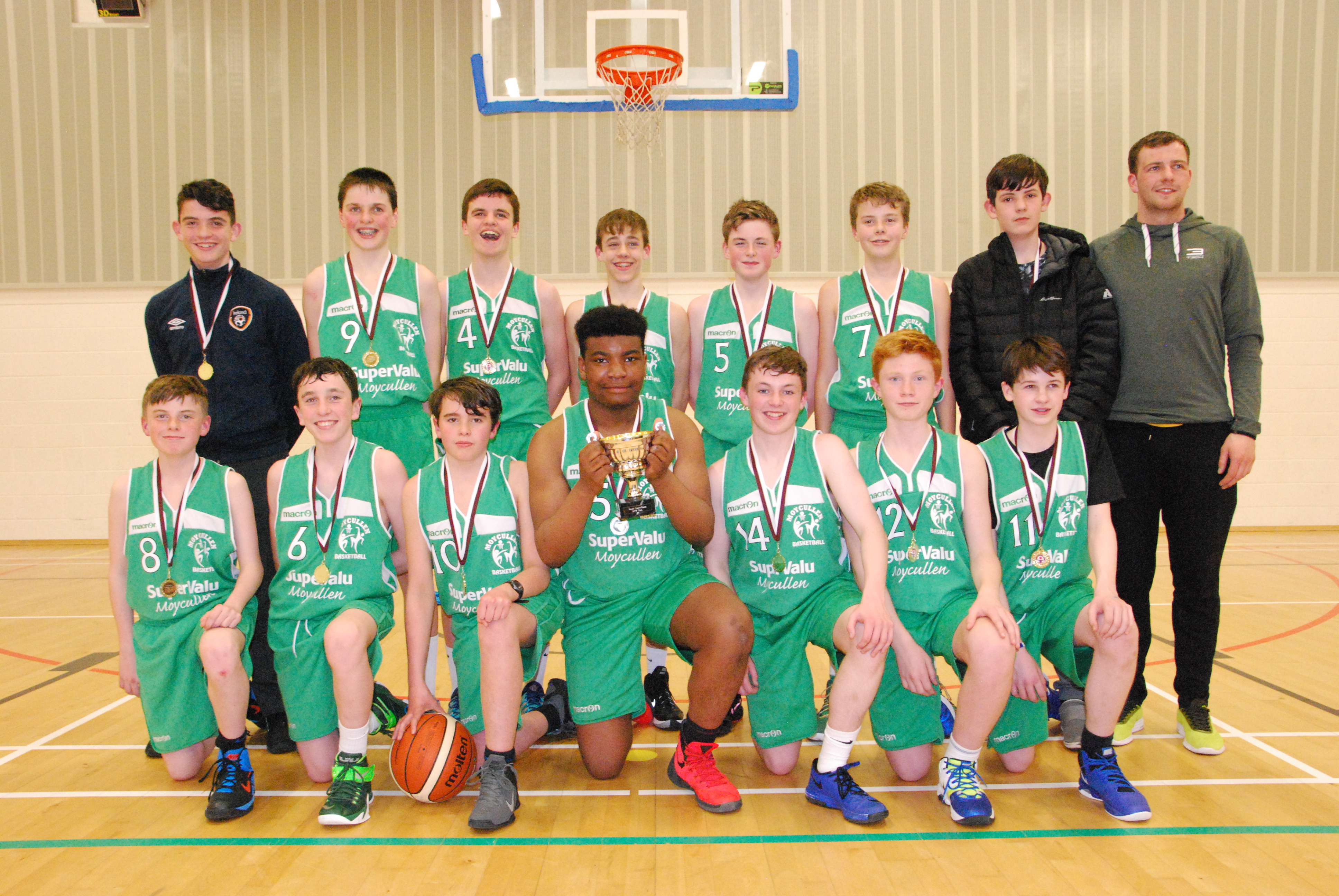 Moycullen U15 boys took on Titans in the area final last week in the Jes Hall and came away with a 56-40 win. The boys were certainly up for the contest and hit the track running going into a 20 -12 first quarter lead. James Connaire caused Titans loads of problems hitting 10 points in the first. Titans did manage to slow the boys down somewhat in the second with Ben Kelly to the fore in a very committed performance. Paul Kelly started to find his range and the game was over as a contest midway thro’ the third as Moycullen kept the scoreboard ticking over with another 19 points. Apart from their offensive execution, what was particularly pleasing was the defensive performance limiting Titans big players to low single digits. In the final quarter, James Wall knocked in a couple of lovely jumpers while Cormac Croke & Ryan Monaghan also made a contribution to the scoreboard.